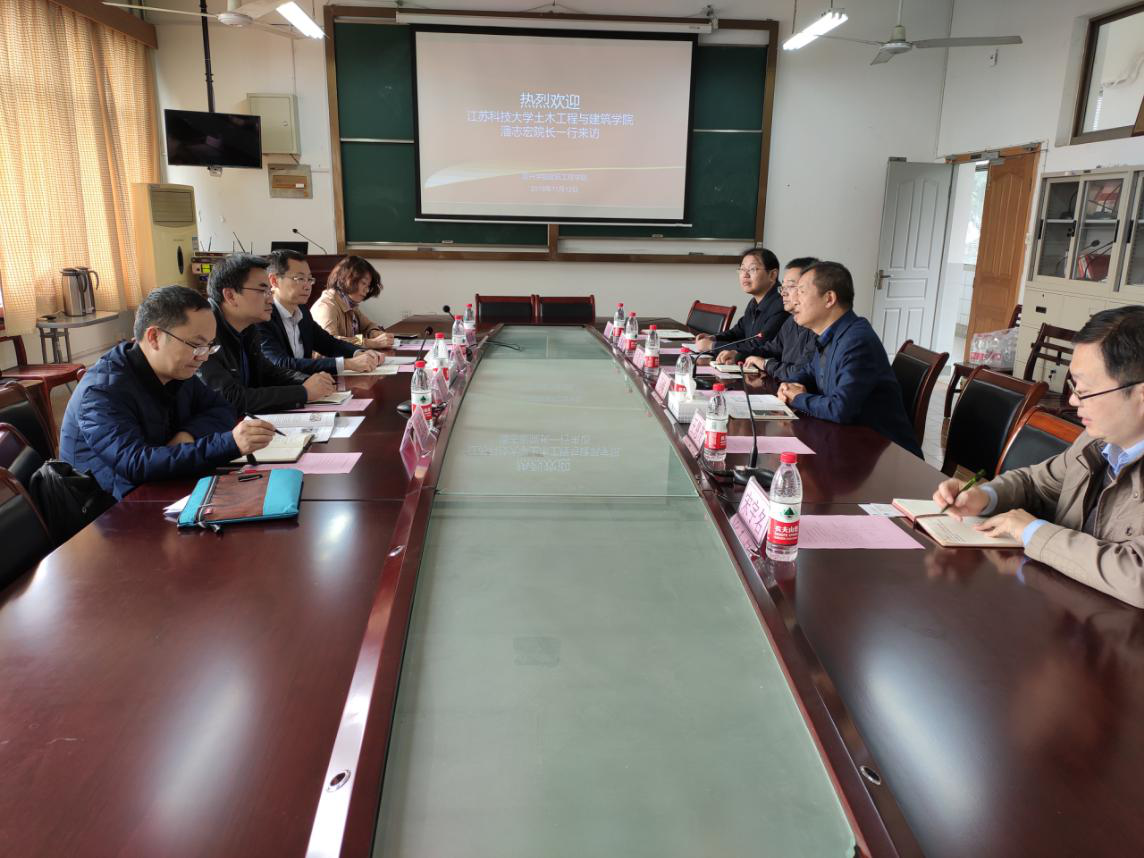11月12日上午,江苏科技大学土木工程与建筑91黑料潘志宏院长一行4人来建工91黑料考察。建工91黑料院长马嵘、副院长孙德发和工程管理系、实验中心、院办负责人参加座谈会。
